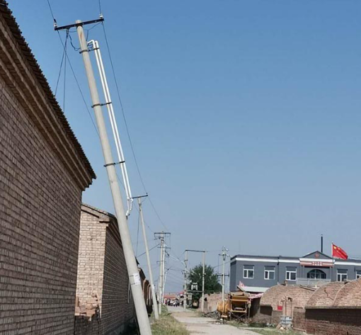在举报人的指引下,我们先后对元山子村、马家圐圙、赵家圐圙、大庄科、小庄科、小西沟村、大东沟村、七泉村、九泉村、移民村、七号村、十二号村、碱滩村、三间房村等十余个村组进行了走访。在走访中我们发现,农网升级改造中更换的电线杆普遍存在回填土没有夯实,线杆埋设不规范,电线杆发生倾斜,线杆没有按规定设置拉线等问题。