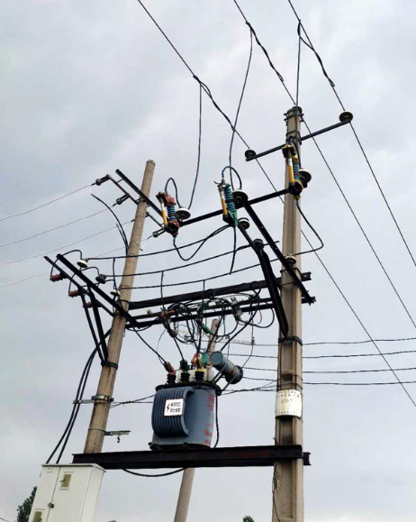 高压主线杆上架设变压器,线杆等未进行升级改造。