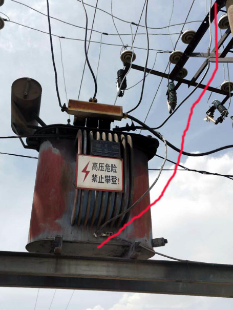 小庄科村一处变台未升级改造,变压器陈旧、引线老化严重。