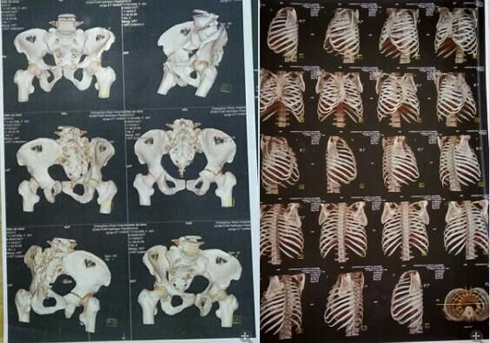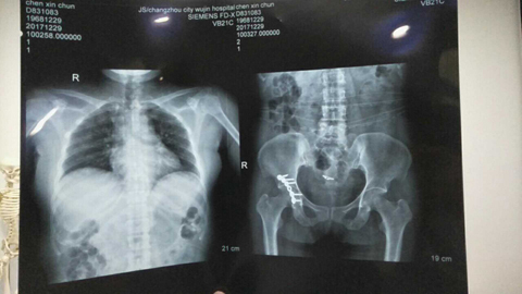 这里所提供的几张片子拍出的颈椎骨折,腰椎横突骨,脊柱骨折,左侧盆骨骨折,内骨粉质性骨折,内骨左侧3一7两处骨折胸椎骨折,报告单都没有。报告单上有50根骨折包括两处有的,只出三分之一的骨折。常州市武进人民医院涉嫌隐瞒我的伤情,进手术室开刀涉嫌隐瞒了主要骨折的片子,去要片子不给;补出院小结,补两次,颈椎骨折,腰椎骨折,胸椎骨折,内骨粉质性骨折还不肯补。