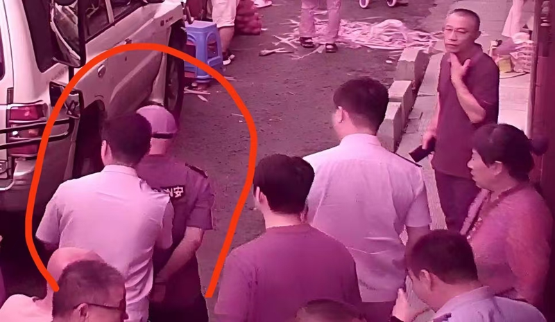 据一楼的保洁阿姨讲:那些身着制服的人很凶,和土匪一样不让人说话,特别是那个带队的秃头,霸道得很,一句“妨碍公务”就把保安大爷反手戴上手铐,“秃头”旁边的另一名工作人员对押送保安大爷的人喊:“先把他塞到‘狗笼子’里再说”。