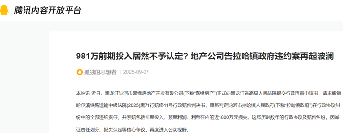 981万前期投入居然不予认定? 地产公司告拉哈镇政府违约案再起波澜