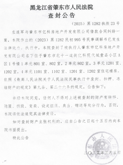 肇东市人民法院执行局长唐宝山(电话:19004605005),在执行亿科房地产开发公司与左连军高利贷一案中,本金加利息159万,有抵押物已查封,3套商服628.84 平方米,价值4617935元,查封2年不拍卖,给企业造成36万元利息,给企业造成损失。2025年3月4日在不查明财产的产权不清的情况下,其又查封了实际施工人的9套房产,共计930.24平方米,价值4436740元,是班组长、农民工的工资,上百人的血汗钱,半年多没变现,有上访的、告状的、要上吊的,错误查封导致上亿元项目滞销,损失及利息100多万元。