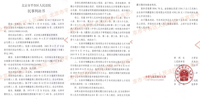 然而,工程进展未半,孙艳红在收取50%进度款(10.5万元)后单方面停工撤场,继而反客为主,将伟鹏公司诉至法庭,索要高额增项工程款和材料垫付费。案件进入平谷区人民法院后,在主审法官许友刚与万里红操办下,案件即演变为一桩涉嫌严重程序违法和枉法裁判的典型争议。