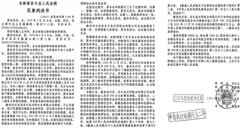 但东丰县法院办案人员刘云山、朱晓艳等人,在陈云鹏的权力干预下,无视铁证、徇私枉法,对我提交的关键证据视而不见、拒不采纳,甚至对公安机关依法调取的卷宗材料也刻意回避,仅以宋丹持有借据和抵押协议原件为由,便草率认定我与宋丹存在400万元的借贷关系,判决我和东丰县兴利牧业有限公司承担还款责任。二审法院未能查清案件事实,盲目维持一审错误判决;吉林省高级法院亦未依法履职,驳回了我的再审申请。敢问,这些手握司法审判权的工作人员,为何胆敢如此明目张胆违法乱纪?为何胆敢无视铁证、枉法裁判?答案就是与宋丹、陈云鹏相互勾结,为其侵吞我的企业和个人财产保驾护航!