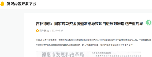 本站讯 在吉林省德惠市,德惠市隽氏农牧科技发展有限公司(简称隽氏公司)承担的国家2016年农村规模化沼气工程,中央预算投资生物质天然气试点项目因国家专项资金多次被冻结,陷入了停滞的困境,背后的司法争议和项目波折引人关注。