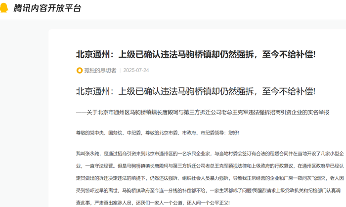 北京通州:上级已确认违法马驹桥镇却仍然强拆,至今不给补偿!