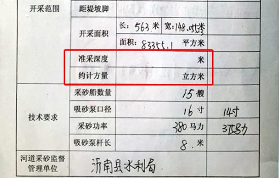 在沂南县水利局,笔者向其办公室人员展示了“许可证”的内容,让其协调相关监督管理部门解释准采深度、统计方量为什么空白,在日常如何行使监督管理职责,针对群众反映的前期无证采砂、后期超范围采砂如何调查监管等问题给予答复。