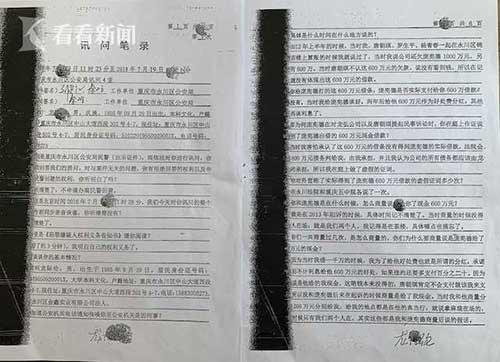 龙际伦在2018年7月19日11时23分至14时53分接受永川区公安局人员讯问时,对600万元借款内情进行了供述,笔录显示——