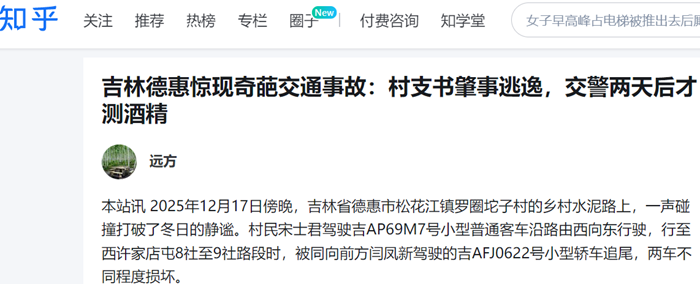吉林德惠惊现奇葩交通事故:村支书肇事逃逸,交警两天后才测酒精