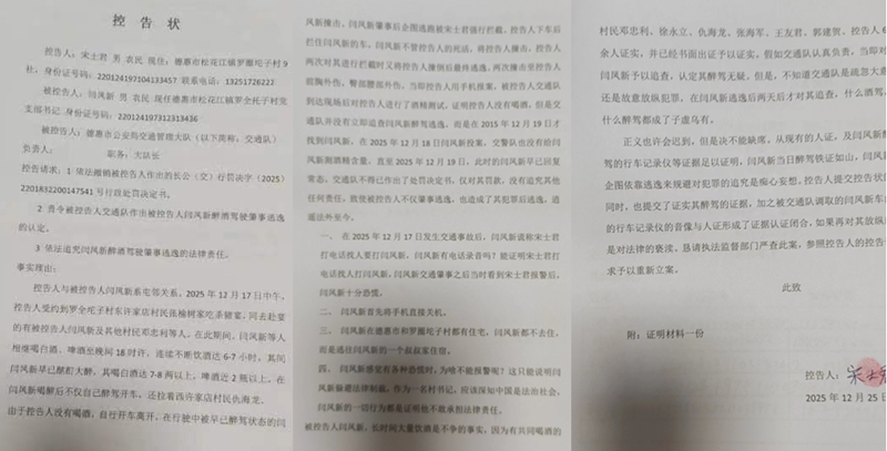 目前,宋士君已正式提交控告状,请求执法监督部门严查此案,撤销相关行政处罚决定书,责令交警部门认定闫凤新醉驾肇事逃逸事实,并依法追究其法律责任。