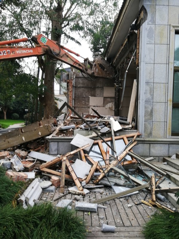 一幢强拆后,当地政府工作人员告诉我说“现在大家都仇富,你要讲政治”,勒令我打开院子大门,不能关闭,镇政府工作人员在我家院子门柱上挂上“乡贤公园”的牌子。另三幢都分别挂上农舍1#,2#,3#,院子中的凉亭被拆除。后来一副镇长告诉我,昨晚县里四套班子召开紧急会议,决定三幢房子一没收二补办。没收是走过程,其实拿不走,还是你们用,到最后落实政策还你,县里要向上级有交待。