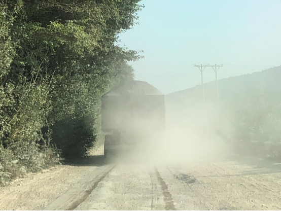 连接衣仗子村至甜水沟村只有一条约8公里长的水泥路,这条路两侧不仅分布着多个自然村民小组,还分布着10来家采石企业。这条路不仅在承担着众多村民们出行的同时,还是众多矿企运输石料的唯一通道。晴天出门一身土,雨天出门一身泥,便是这里的真实写照。