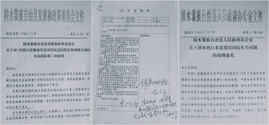 2010年,在海南省招商引资政策感召下,为提高陵水当地居民的医疗服务水平,我方与北京军区总医院携手合作,决定在陵水建设一座现代化高标准医院,并向陵水县政府递交了《关于军民共建“陵水白求恩爱民医疗中心”》的请示报告。